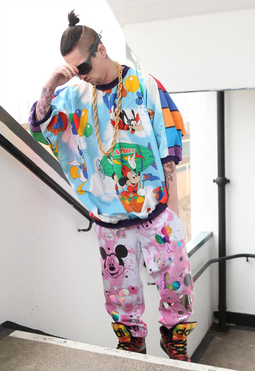 As a converse example, consider the music style vaporwave, kitsch 90’s muzak chopped and screwed. The style had a strong visual component, and if you see a guy looking like this walking down the street, you just KNOW he’s politically disruptive. Or at least, he was in 2012. Now he probably just bought the display mannequin’s outfit at H&M. Actually i think he probably wasn’t politically disruptivve, but he sure as hell wanted to be. (what was his platform: disney is for adults?)